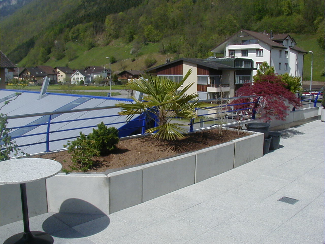 Durch den Naturgesteinvorsatz entfalten die Pflanzentröge, die erfrischende, harmonische Wirkung - eine Einladung zum Wohlfühlen und Verweilen.