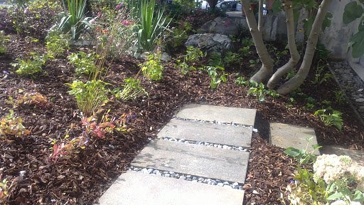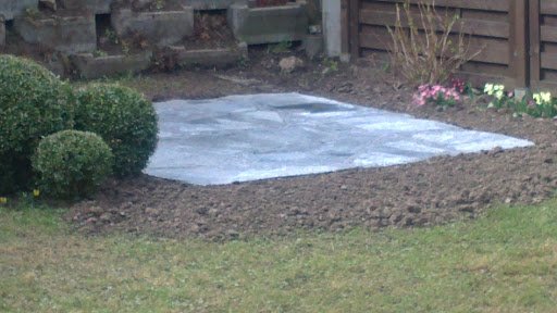 Der fachgerechte Unterbau schafft die Voraussetzung für perfekt verlegte Steinplatten im Garten.